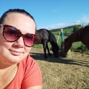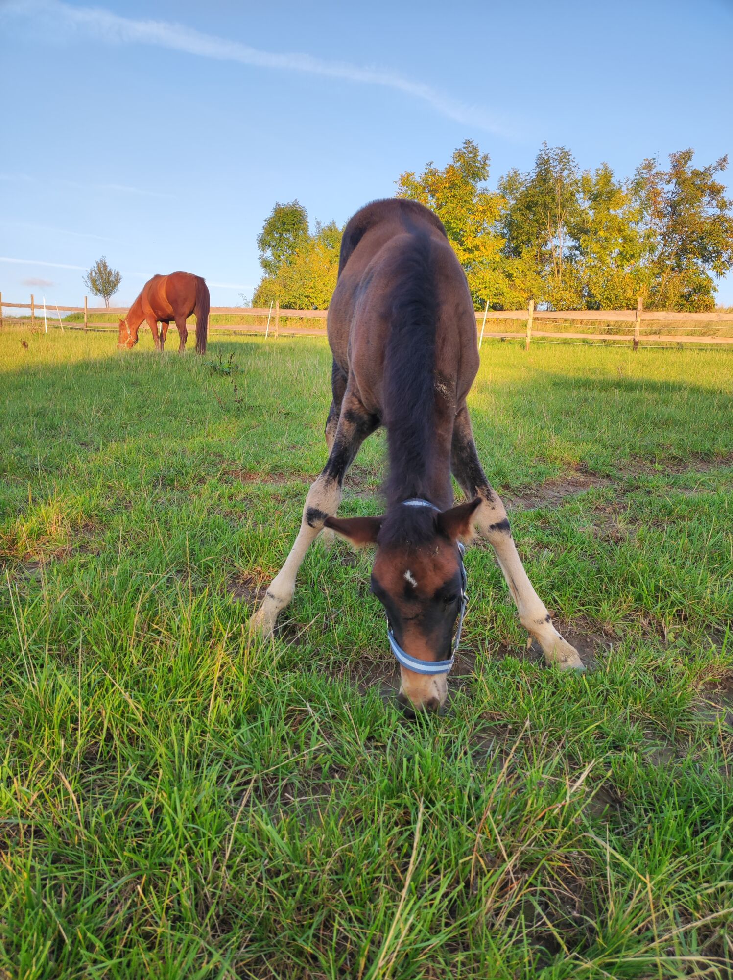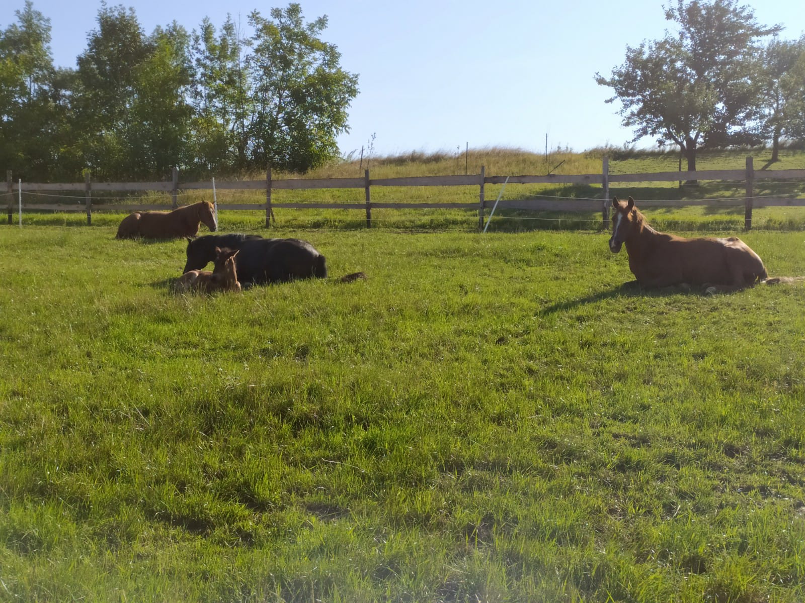 Dvě hodiny na louce u koní. Koně jsou kolem nás přirozeně přítomní.