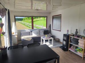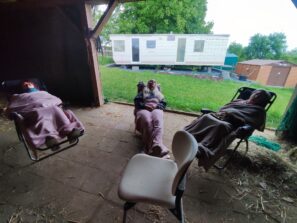 Koně jsou kolem nás přirozeně přítomní, ale oddělení páskou, aby měli klid oni i my.